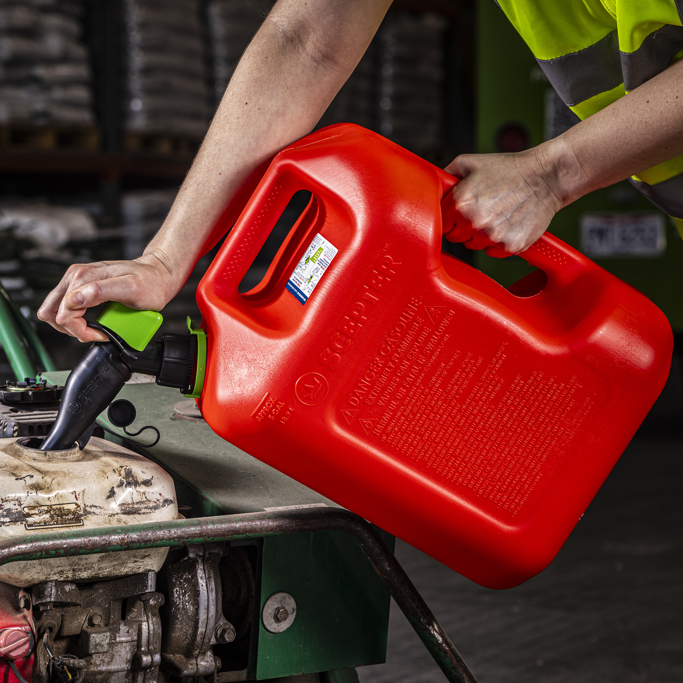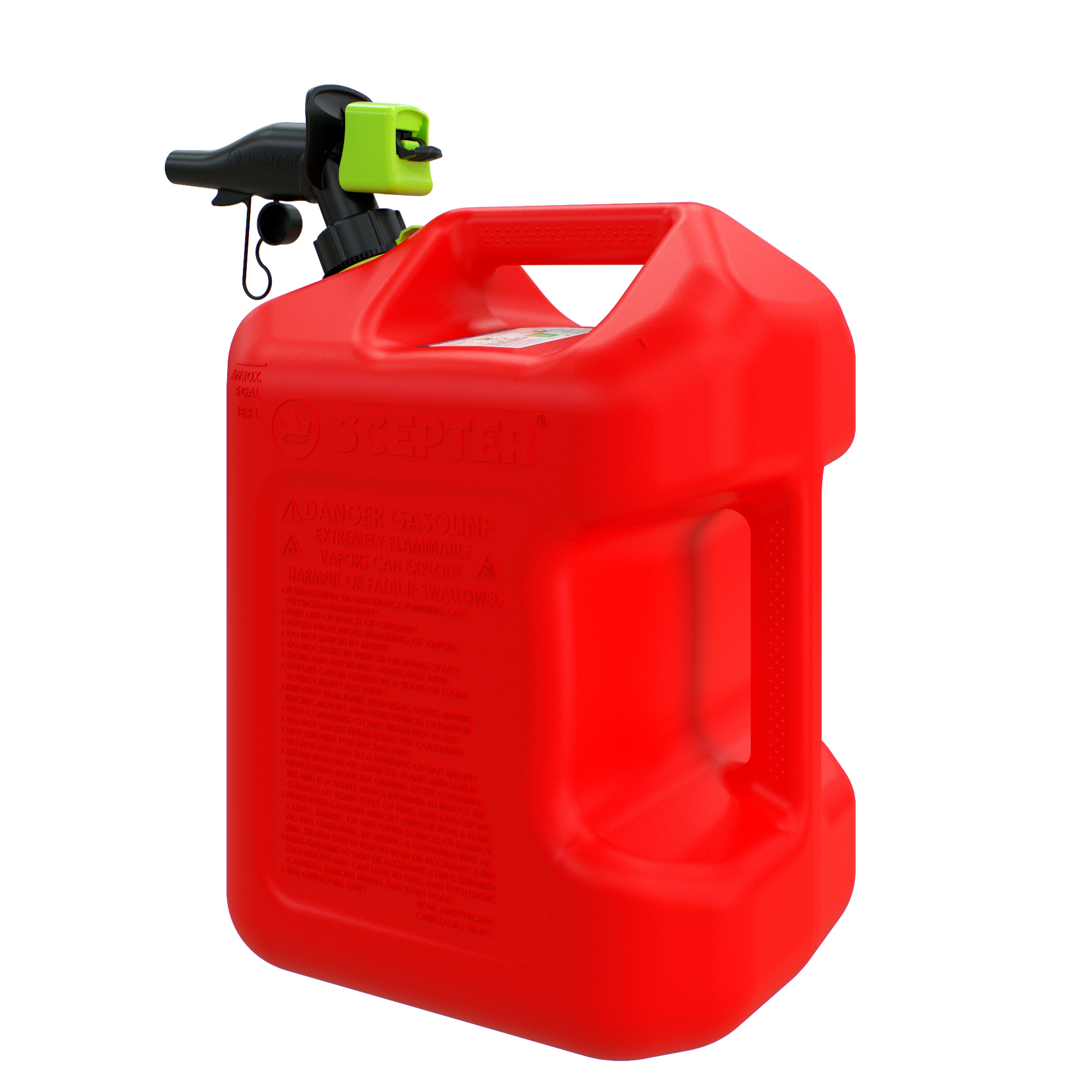 Scepter® SmartControl® fuel containers are the next generation of rugged fuel cans that provide a clean, fast, and hassle-free experience. Featuring a simple spout and flame mitigation device, this product eliminates frustration with an easy-to-use, durable design, and an added layer of protection.