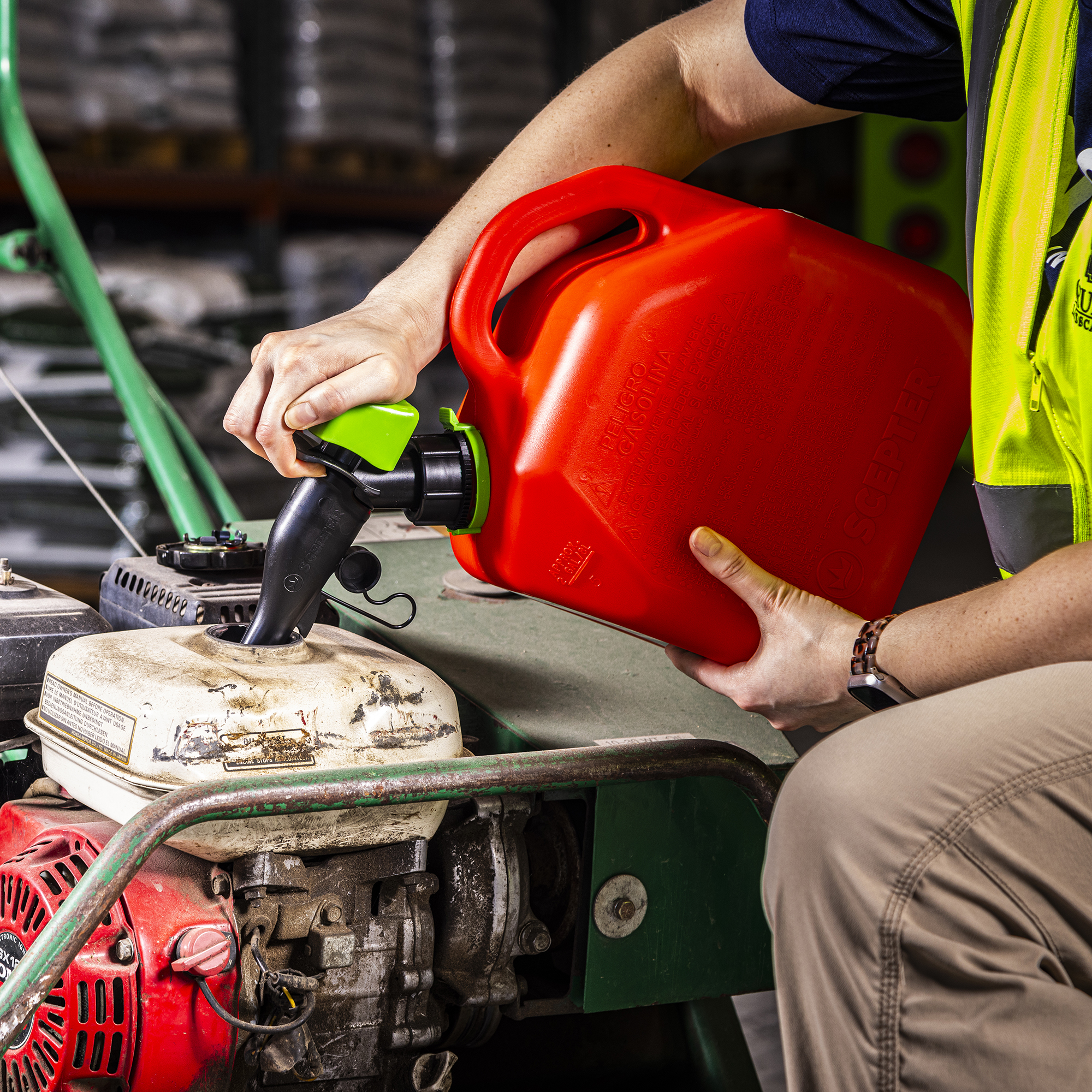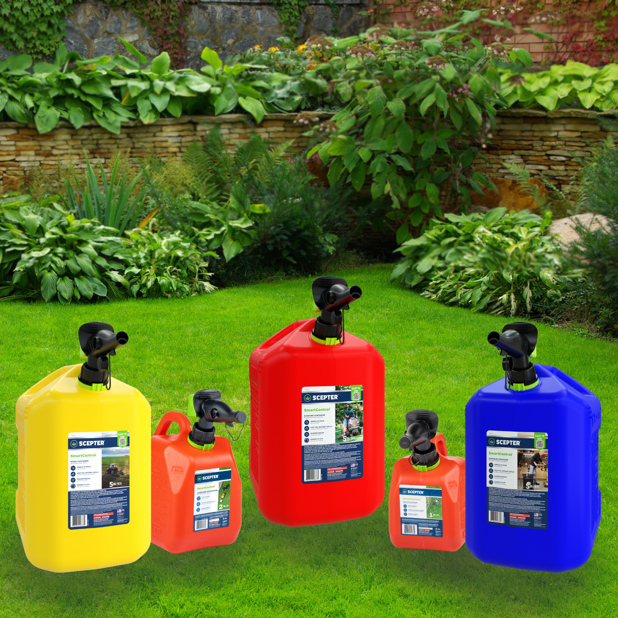 The Scepter SmartControl Gas container has a squeeze-controlled flow rate which makes filling everything from lawnmowers to recreational vehicles a cleaner, safer, better experience - without spilling a drop.
