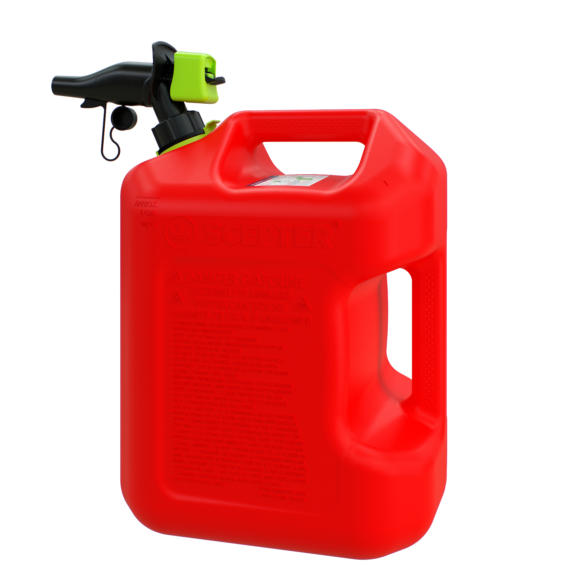 Scepter® SmartControl® fuel containers are the next generation of rugged fuel cans that provide a clean, fast, and hassle-free experience. Featuring a simple spout and flame mitigation device, this product eliminates frustration with an easy-to-use, durable design, and an added layer of protection.