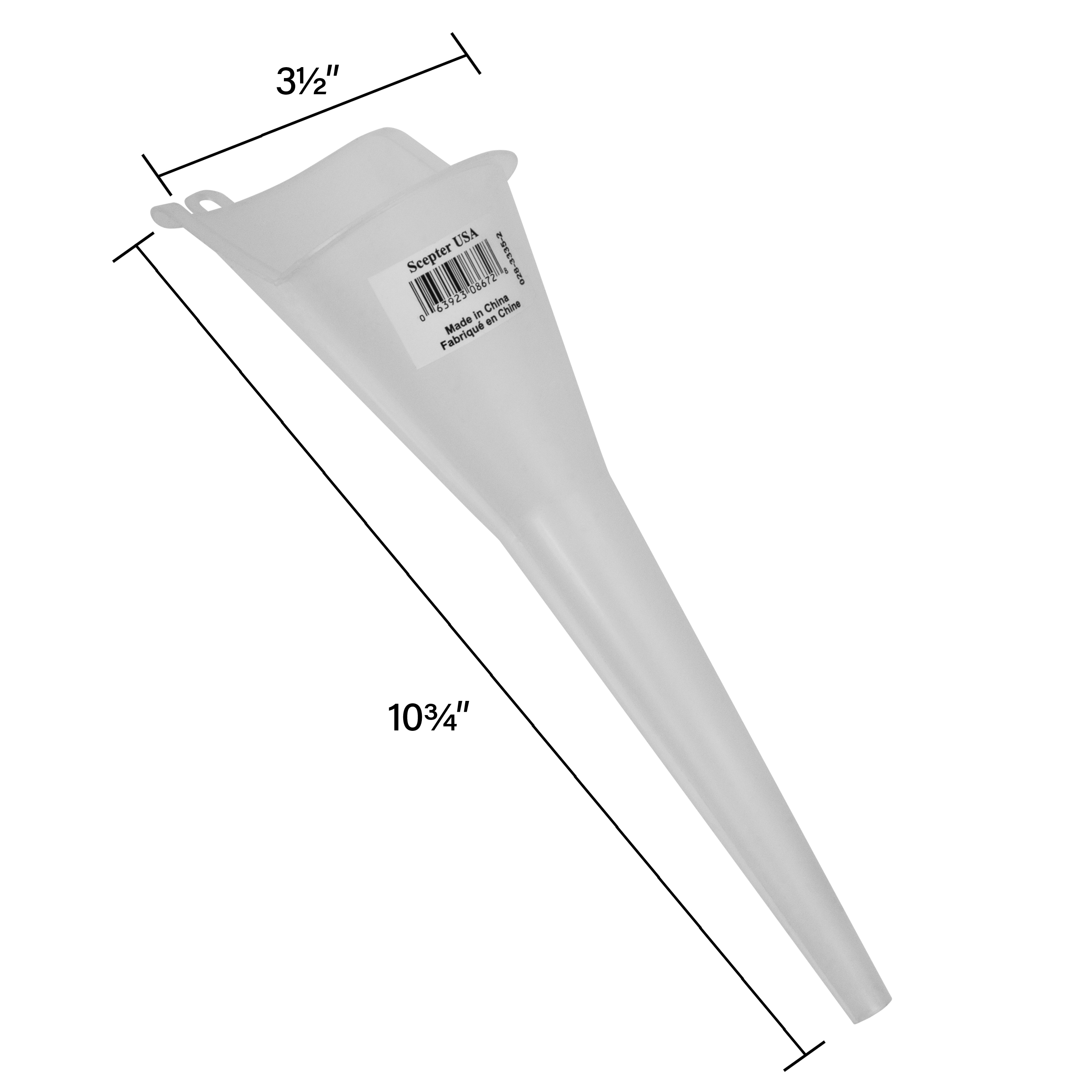 This multi-purpose funnel has a long spout and wide neck, allowing for easy cleaning and pouring at any angle. Excellent for use in auto shops, home garages, and a variety of DIY or repair purposes.
