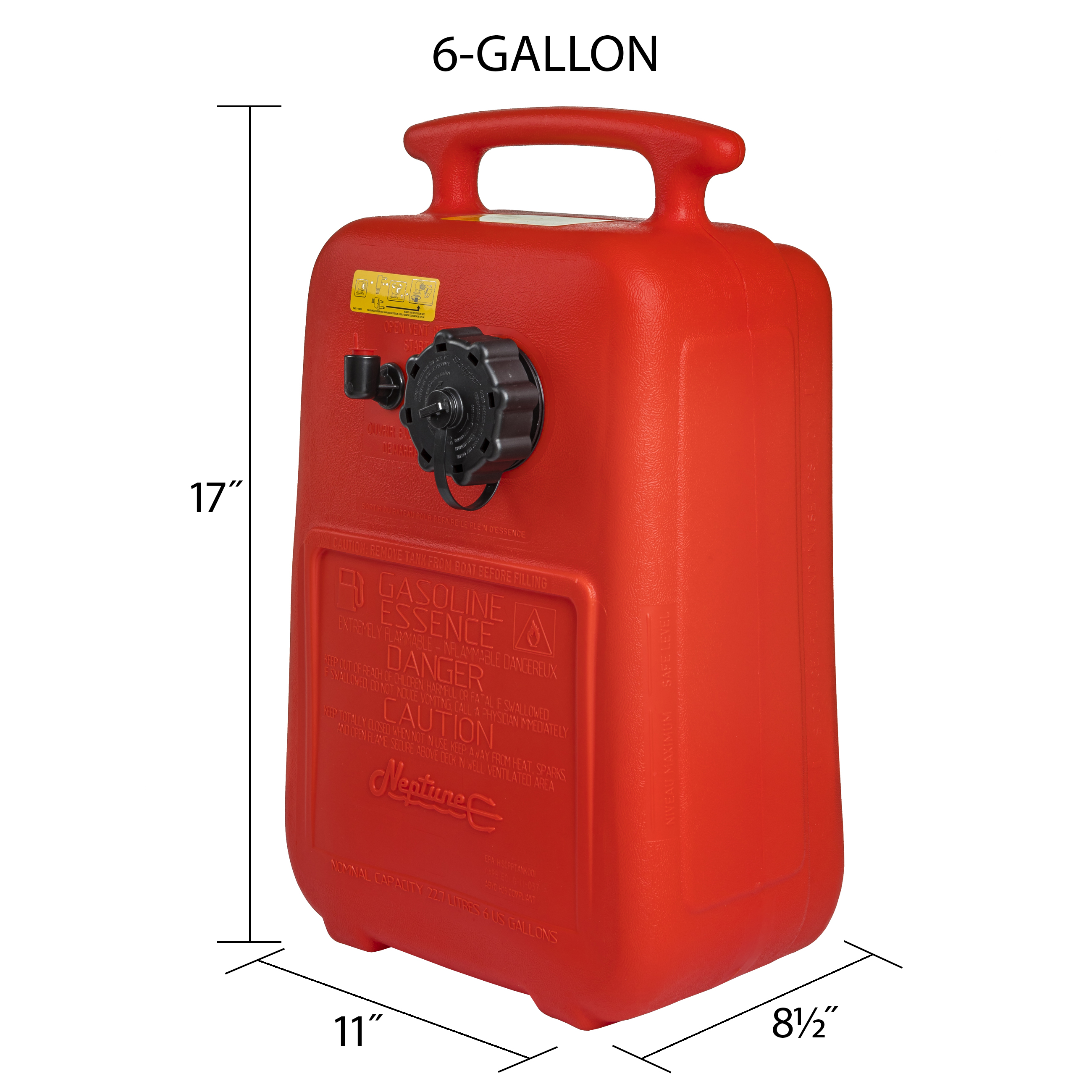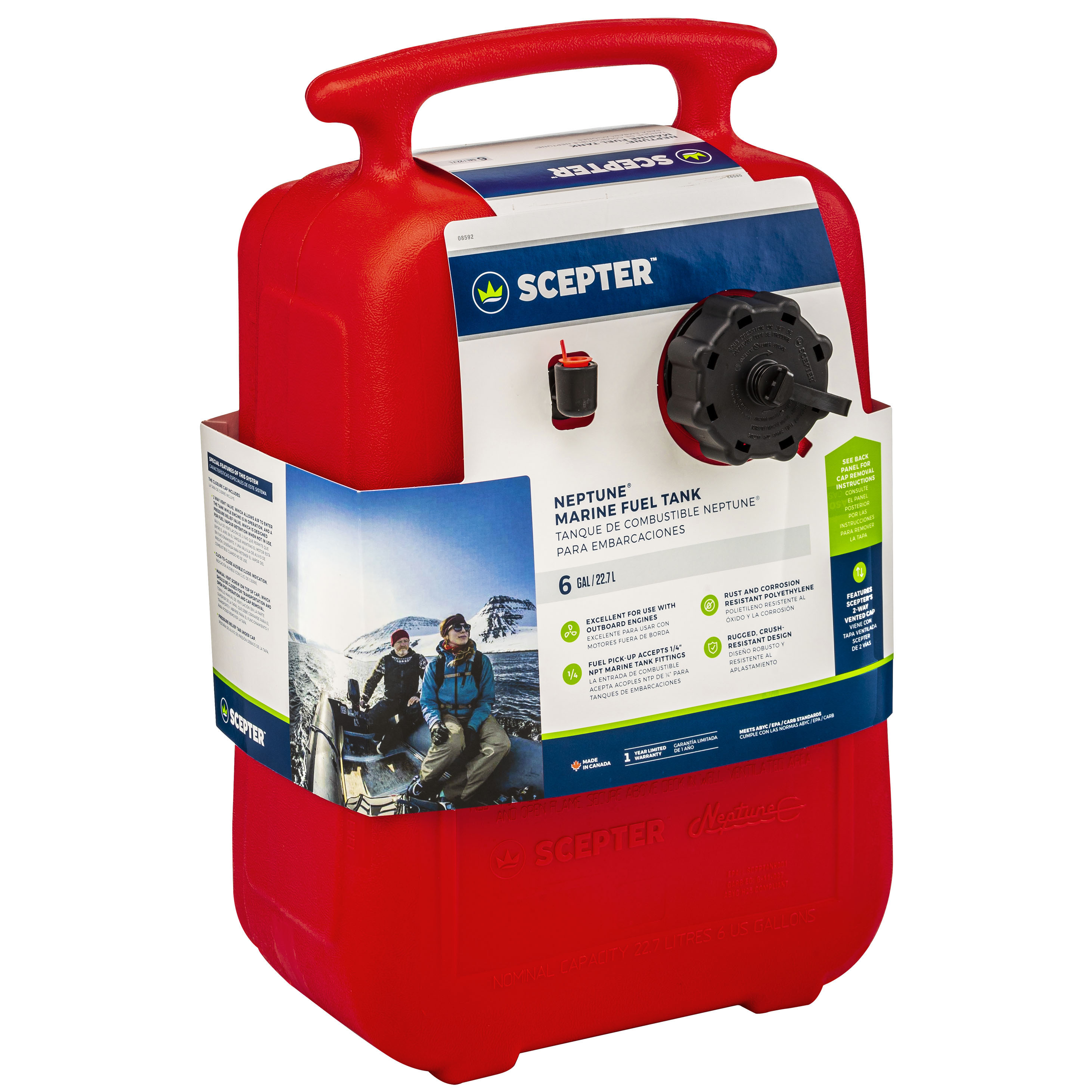 Excellent for use with outboard engines, the Neptune 6 gallon portable marine tank is easy to transport and features Scepter's 2-way vented cap. Made from UV stabilized material, the rugged crush-resistant design is built to fuel your marine adventures for years to come!