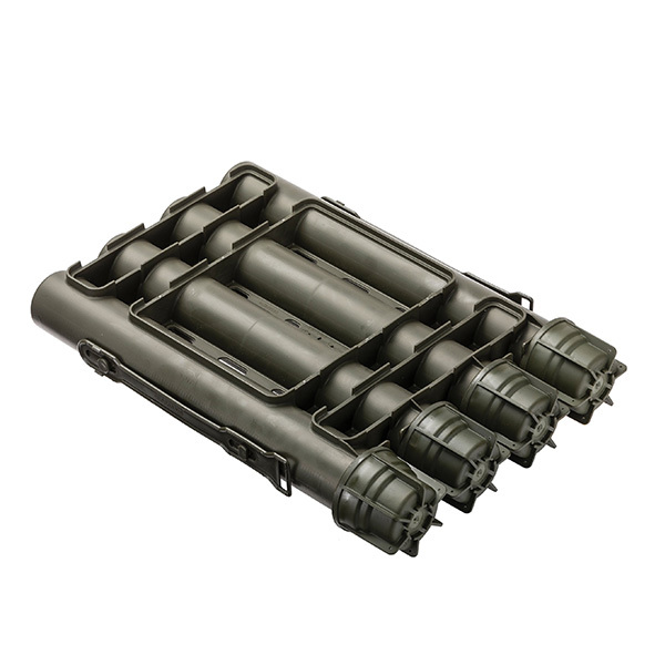 Scepter's large caliber ammunition containers lighten the soldier’s load, withstand extreme weather conditions, and reduce costs throughout the supply chain. From the sub-zero temperatures of the high Arctic, to the deserts of Afghanistan, plastic can withstand extreme weather conditions in demanding operational environments. Each container houses a proprietary custom fit dunnage arrangement. The interior sleeve, spacers, foam cushions and thermoplastic rubber offer shock absorption and ensure rounds are protected and held securely in place for safe storage and transportation. Waterproof, corrosion and fungus resistant, plastic has several distinct advantages over traditional wood and steel packaging. Containers are recoverable and reusable with minimal dunnage resulting in reduced field debris. Ammunition is accessible from skid face so the pallet load can remain intact eliminating the need to un-strap or disassemble. *Containers are made to end-user specifications. UN / NATO qualified.